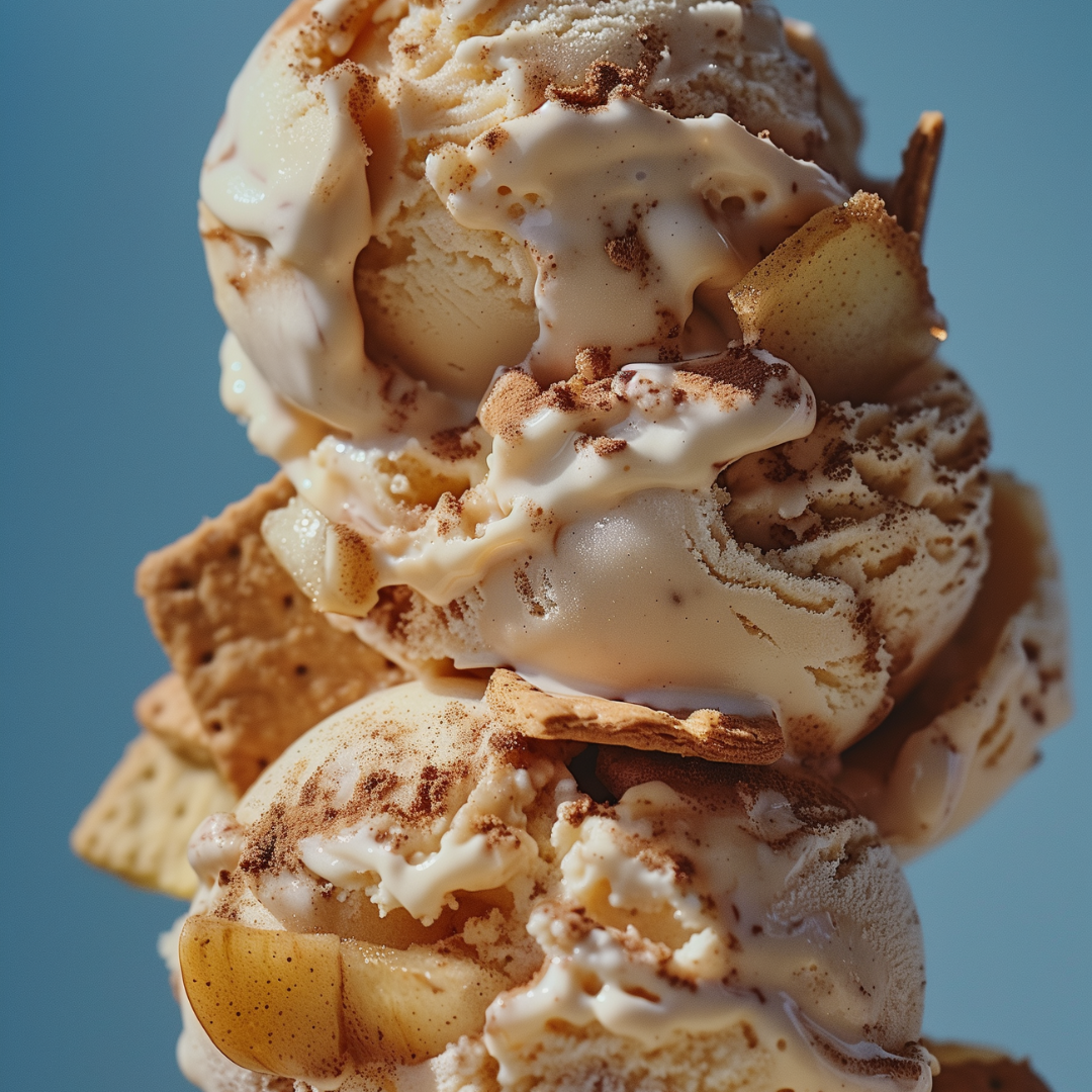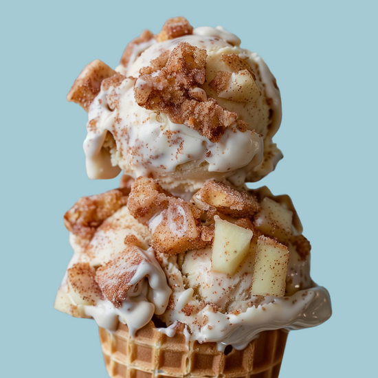 To elevate this indulgence, ribbons of rich caramel are swirled throughout, adding a sweet, buttery finish that perfectly complements the cinnamon and apple. "American Pie" is more than just ice cream—it's a heartwarming journey back to cherished family gatherings and festive celebrations. Every bite is a slice of Americana, blending beloved flavors into a decadent, unforgettable treat.