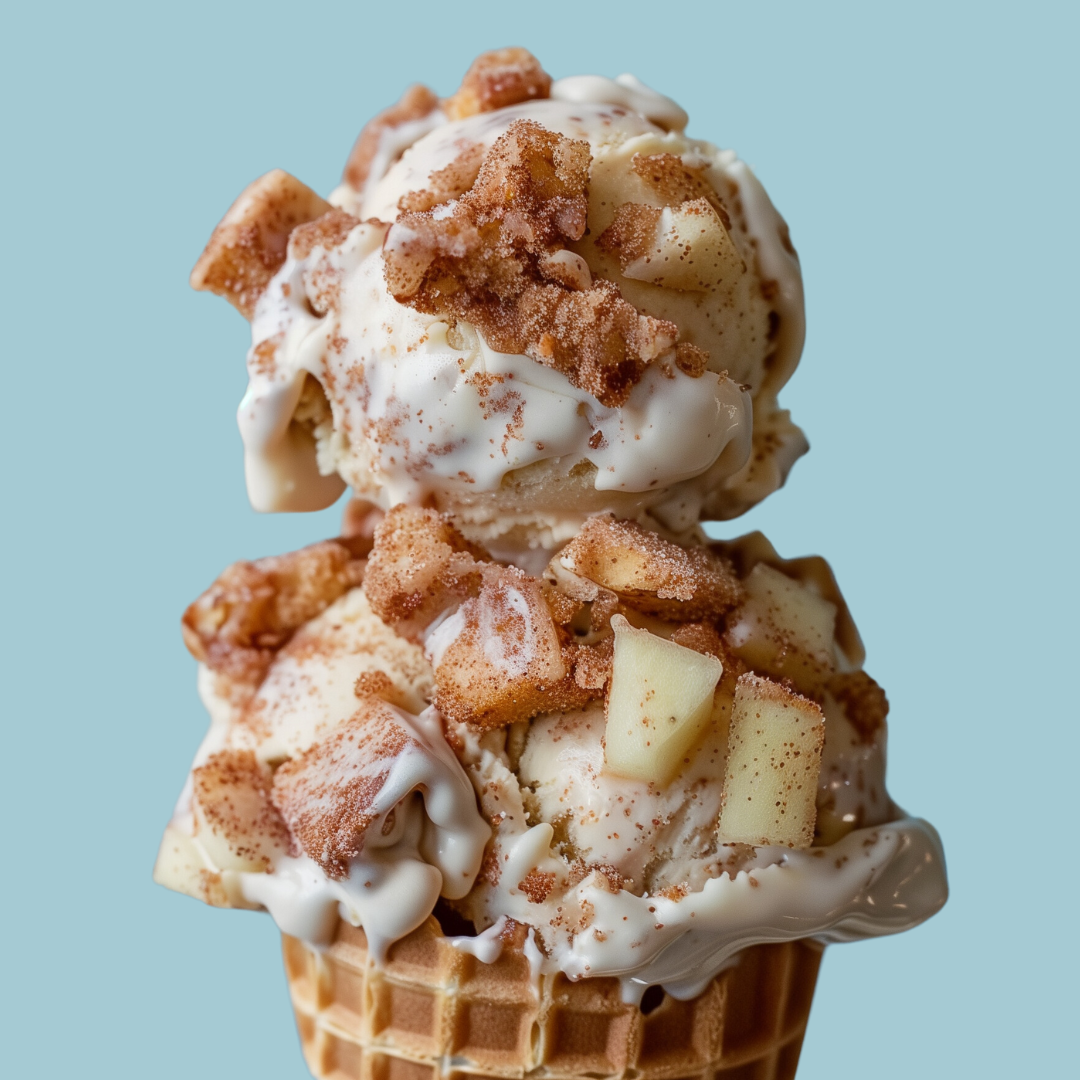 Indulge in the comforting flavors of home with "American Pie," a delightful blend of snickerdoodle ice cream, apple pie filling, and luscious swirls of caramel. This flavor begins with a base of creamy snickerdoodle ice cream, capturing the warm, cinnamon-sugar goodness of freshly baked cookies. Each scoop is studded with tender chunks of apple pie filling, evoking the cozy, nostalgic taste of a classic dessert.